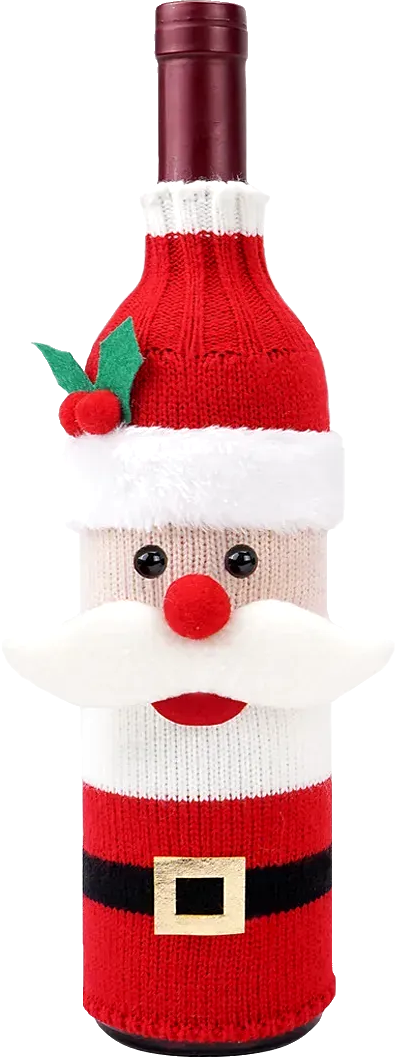 Adorable knitted wine bottle cover featuring Santa Claus. Perfect for Christmas parties & decorations. Crafted from soft, high-quality knit material for a warm and inviting look Simply slip the covers over standard 750ml wine bottles for an instant holiday touch. In addition to covering wine bottles, these covers can also be used as festive table decor or party favors. Each cover measures approximately 28 cm x 12 cm. designed to fit most standard wine bottle sizes.