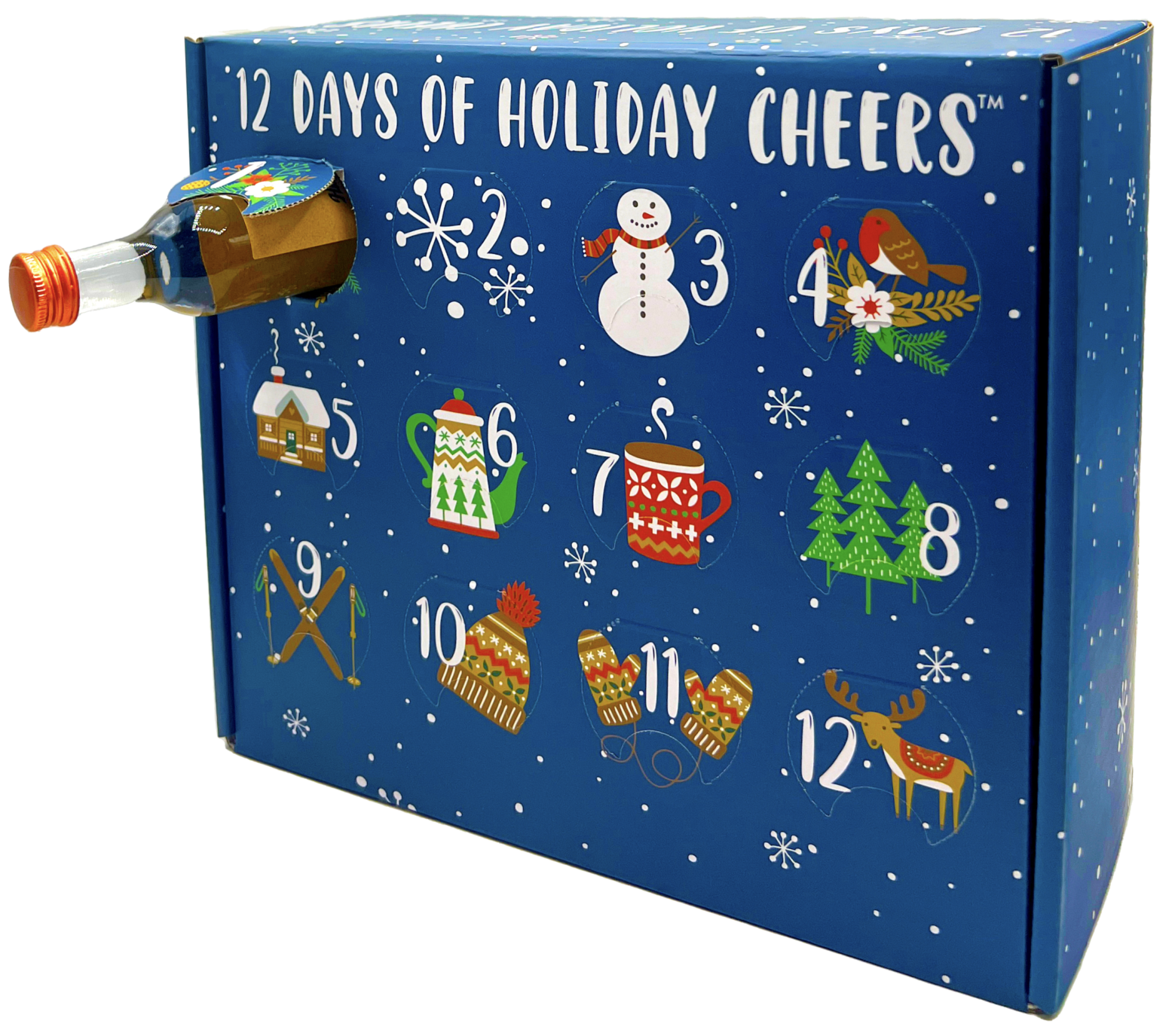 Each advent calendar contains twelve 50ml bottles of our favorite holiday spirits.
