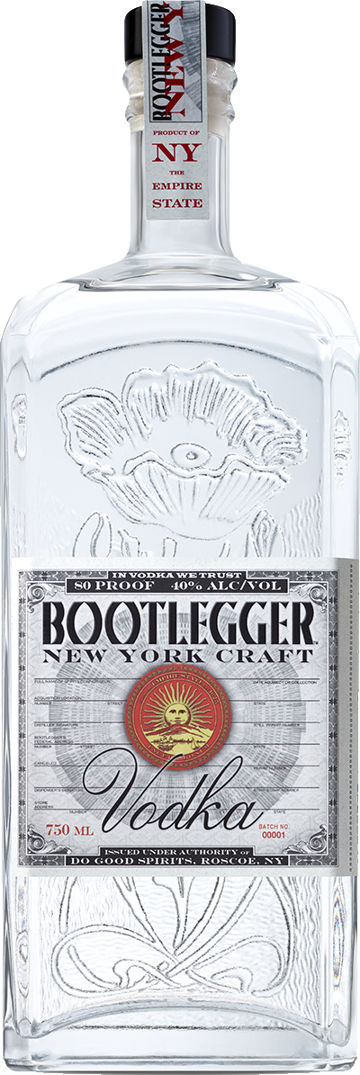 Our Gluten free, 100% American corn grain Bootlegger 21 New York Vodka has a unique genesis. After all, our colorful approach and romantic reverence to the Prohibition era of the 20's and 30's, has given us supreme optimism in the face of today's divergent opinions and social conflict. Just as the Bootleggers shrugged off the 18th Amendment making the transport and sale of liquor illegal in the U.S., we said, "to heck with the financial woes", and instead quit our jobs to follow our dream. A dream to make a locally crafted spirit that respects a sense of tenacity found in the American entrepreneur. A spirit that pulled us out of a depression, saw the birth of the cocktail, backroom speakeasy, and Bootleggers of notorious fame.