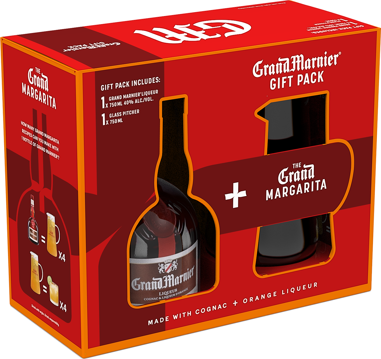 "Grand Marnier-or "GrandMa," as some cocktail geeks gleefully shorthand it-remains one of the classics. Although it's Cognac-based, it's a versatile match for other spirits, too. The liqueur is extremely aromatic, with lots of sweet and bitter orange notes exploding out of the glass. Look for a warm, honeyed flavor and a nice burst of orange peel and spicy cinnamon and ginger on the long finish." 93 Points, Wine Enthusiast Gift set includes one 750ml bottle and a pitcher.