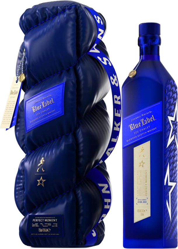 "Inspired by Alpine slopes and the coldest winters, this special edition of Johnnie Walker Blue Label is bound to please avid ski and snowboarding enthusiasts. Each bottle comes in a stylish bag." Tasting Notes