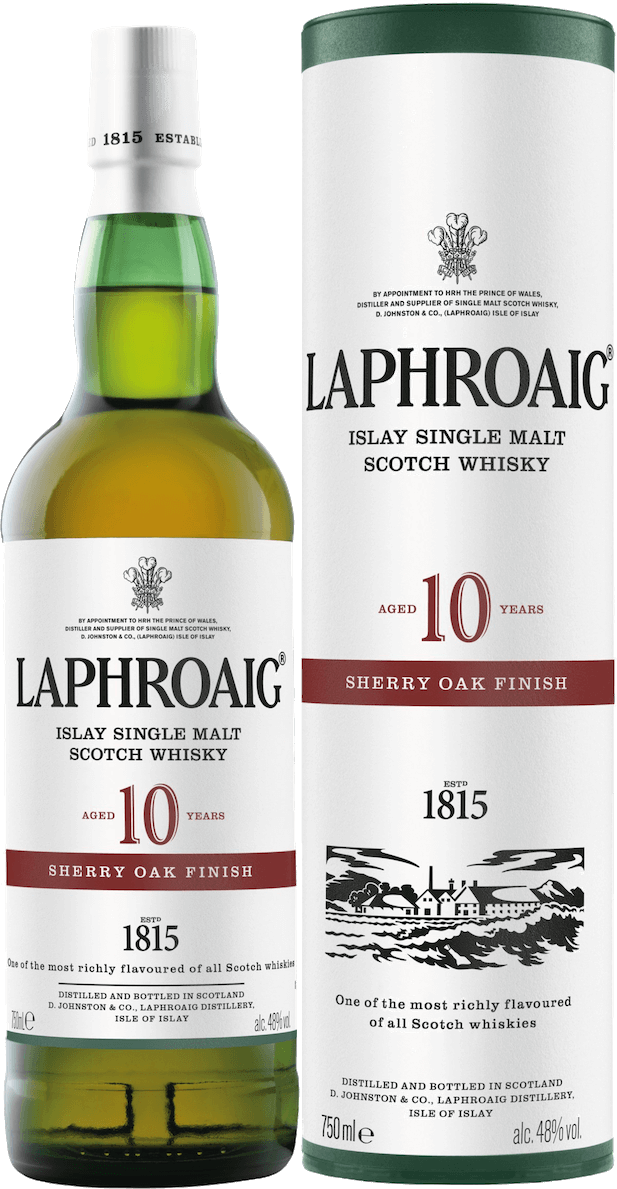"This unique expression from Laphroaig combines the flavors of the 10 Year Old whisky with the sweet, aromatic flavors from the Oloroso Sherry Casks. The marriage of casks creates a rich, full bodied flavor with notes of Manuka honey, bacon and maple syrup alongside the classic smoke, seaweed and hint of salt that Laphroaig in known for." Tasting Notes