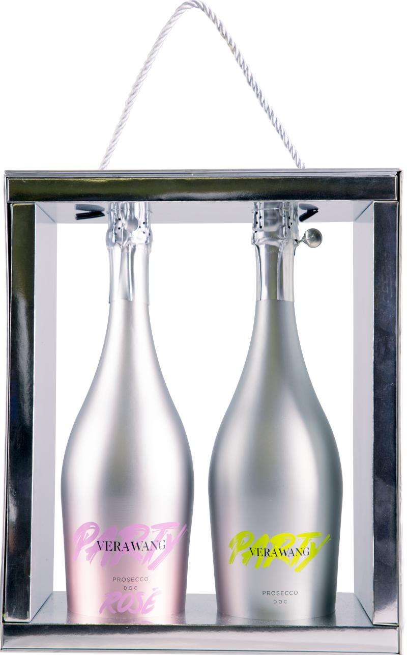 "A premium Italian prosecco made for celebrating life's moments, big and small. Made with an attention to detail that gives it a distinct, bold aesthetic and unique voice, Vera Wang Party is a light, refreshing, and effervescent wine,with a playful yet sophisticated tone. Vera Wang was integral in each step of the production process- from selecting the wine to designing the bottle." Contains a bottle of prosecco and sparkling rose. Winemaker's Notes